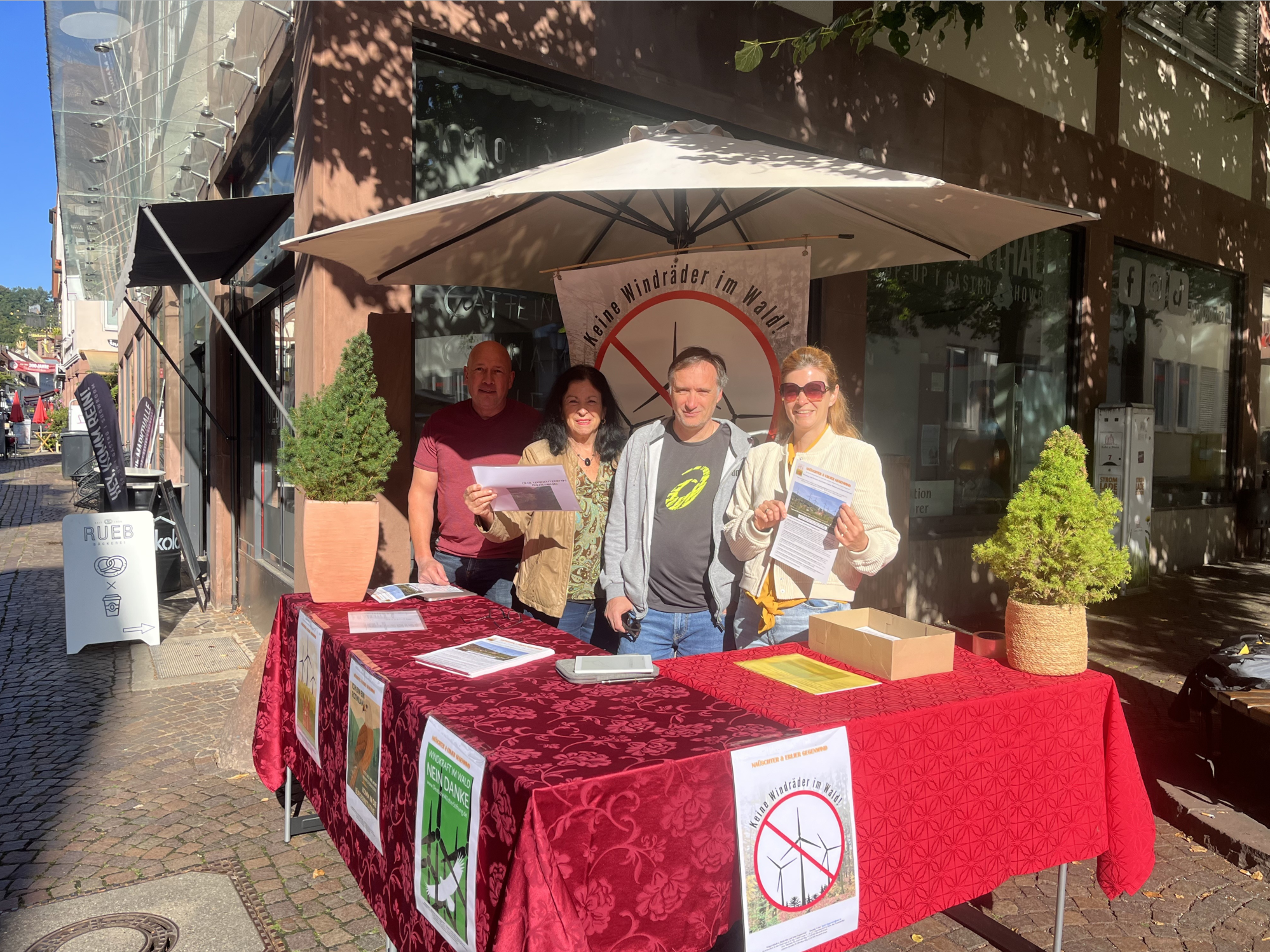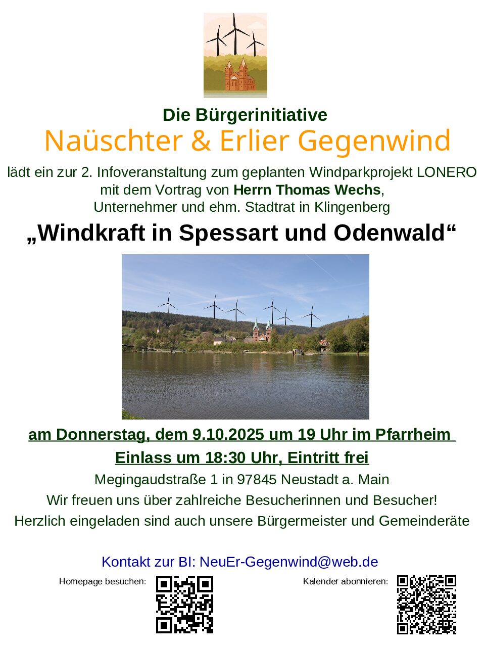 Am Samstag, den 06.09.2025, luden Mitglieder der Bürgerinitiative aus Neustadt und Erlach mit ihrem Infostand auf dem Lohrer Marktplatz die Passanten zu Gesprächen über den geplanten Windpark auf dem Windvorranggebiet „Nordwestlich Neustadt“ ein.