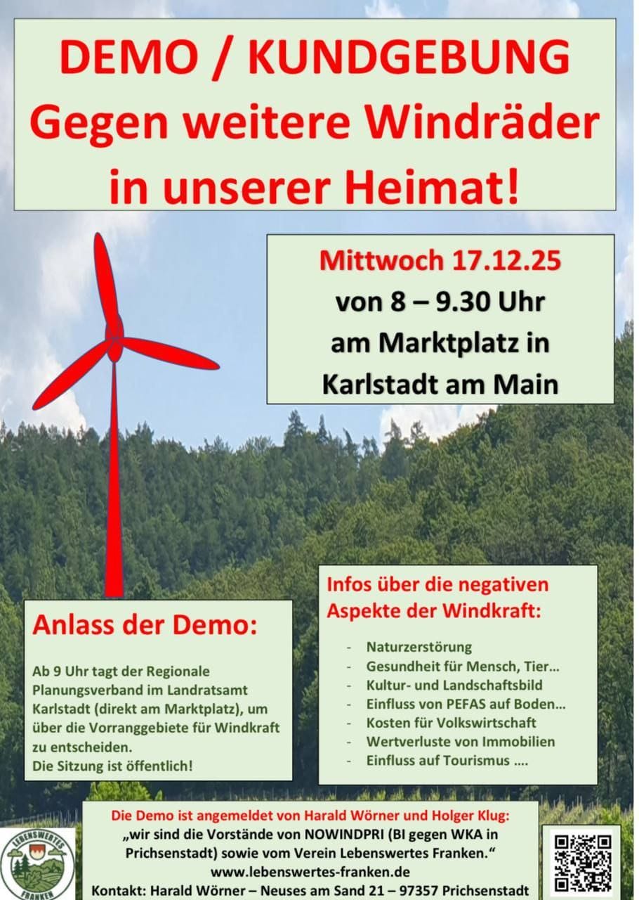 Wie im Main-Echo zu lesen war, beschäftigte man sich schon seit 2014 mit dem Thema Windpark in den Wäldern der Gemeinden:Zitat aus der Ausgabe vom 24.3.25, Interview Fr. Lena Schwaiger:"Mit dem Thema befassen Sie sich aber nicht erst seit der Bekanntgabe der neuen...